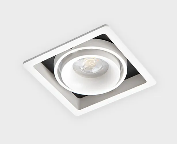 Карданный поворотный встраиваемый светильник с утопленным металлическим корпусом. Комплектуется стандартным патроном GU10, что позволяет использовать светодиодные и галогеновые лампы. Подходит для любого типа интерьера.