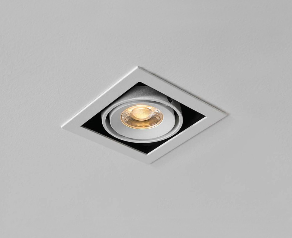 Карданный поворотный встраиваемый светильник с утопленным металлическим корпусом. Подходит для любого типа интерьера, а также для влажных помещений. Драйвер в комплекте.