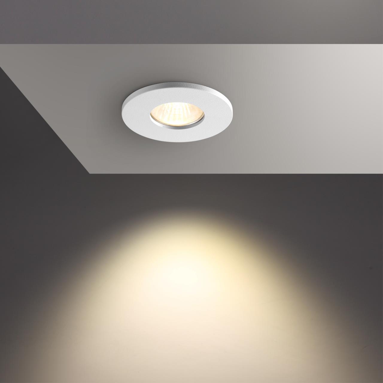Встраиваемый неповоротный светильник с повышенной степенью пылевлагозащиты (IP44) подходит для установки во влажные помещения. Лампа в комплект не входит.