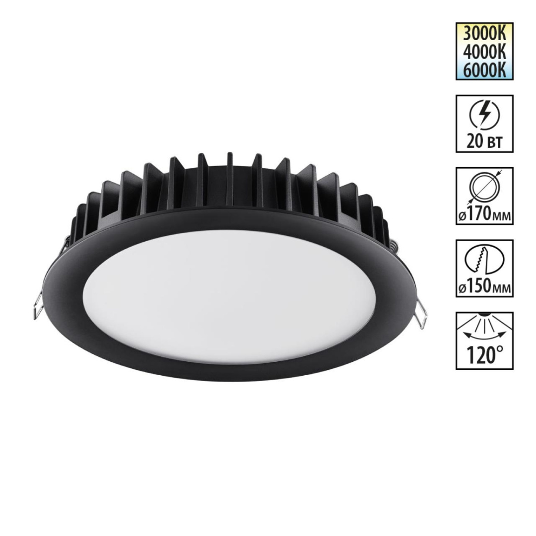 Встраиваемые светодиодные светильники линии LANTE с переключателем цветовой температуры 3000К (теплый белый) -4000К (нейтральный белый) -6000К (холодный белый).