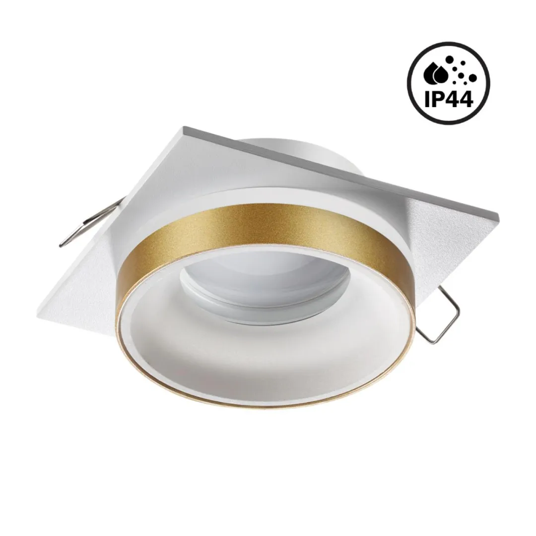 Встраиваемый неповоротный светильник с повышенной степенью пылевлагозащиты (IP44) подходит для установки во влажные помещения. Лампа в комплект не входит.