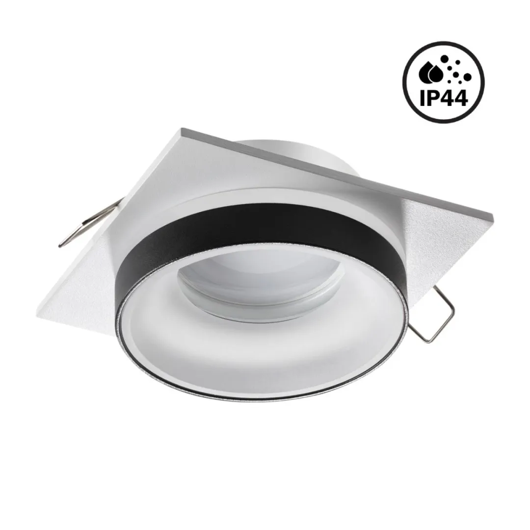 Встраиваемый неповоротный светильник с повышенной степенью пылевлагозащиты (IP44) подходит для установки во влажные помещения. Лампа в комплект не входит.