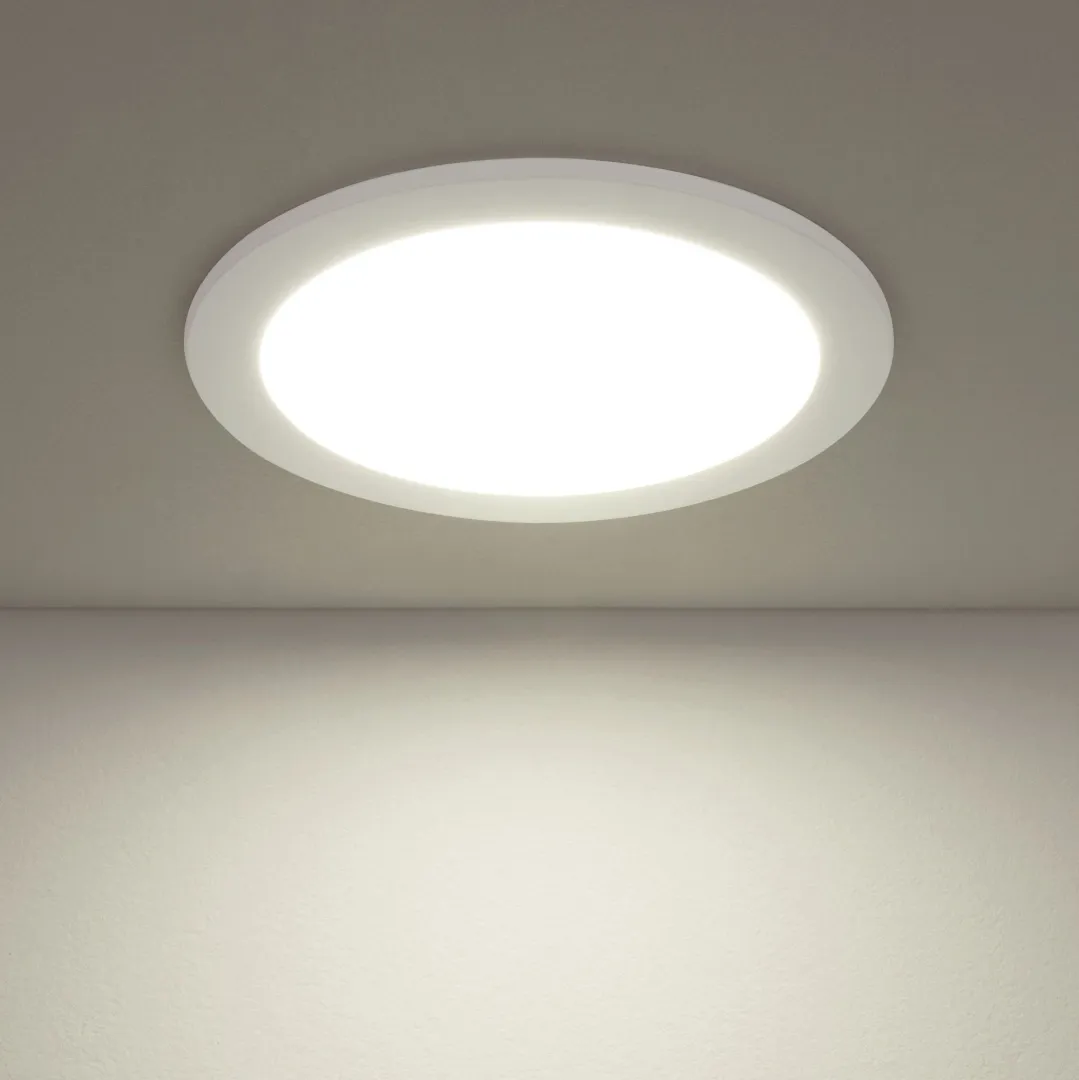 Встроенные яркие SMD светодиоды мощностью 18 Вт образуют световой поток 1440 лм и имеют комфортную цветовую температуру 4200 К. В производстве акцентного светодиодного светильника использованы высококачественный алюминиевый сплав и надежное термостойкое окрашивание. Универсальный светильник легко устанавливается на гипсокартонные конструкции, подвесные и натяжные потолки.