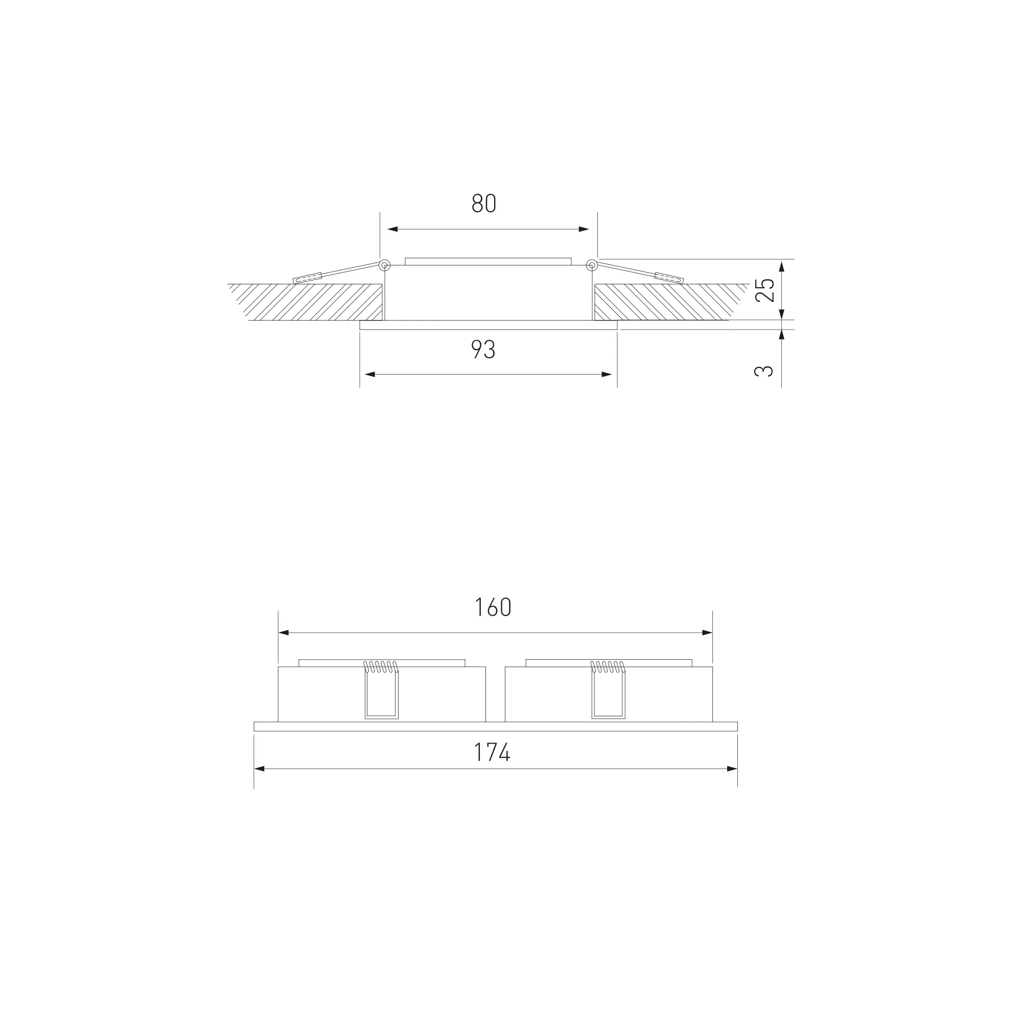 В производстве точечного светильника использовали высококачественный алюминиевый сплав с надежным защитным покрытием. Благодаря простой конструкции универсальный светильник легко устанавливается в подвесные и натяжные потолки.