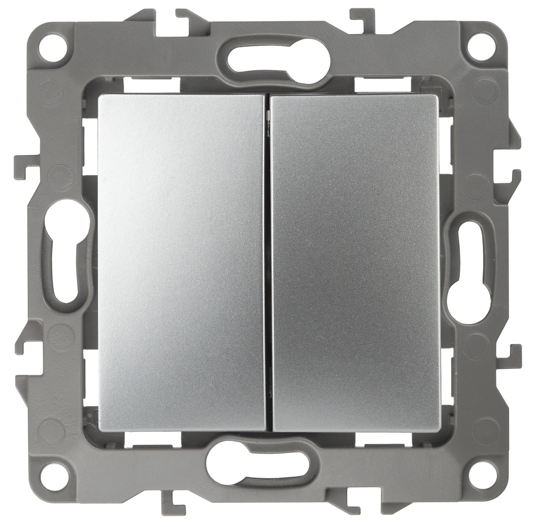 Выключатель перекрёстный/промежуточный, двойной серии Эра 12 скрытой установки механизм, цвет алюминий 12-1112-03. Номинальные хар-ки 10А 250В. Сделан из поликарбоната, оснащено автоматическими клеммами для быстрой и надёжной фиксации жил кабеля в механизме. Парные клеммы обеспечивают соединение шлейфом. Монтаж в подрозетник производится на винты. Рамки приобретаются отдельно. Рамки Эра 12: 1 пост 12-5001-хх, 2 поста 12-5002-хх, 3 поста 12-5003-хх, 4 поста 12-5004-хх, 5 постов 12-5005-хх. Рамки Эра 12 Сатин: 1 пост 12-5101-хх, 2 поста 12-5102-хх, 3 поста 12-5103-хх, 4 поста 12-5104-хх, 5 постов - 12-5105-хх (хх - код цвета: 01-белый, 02-слоновая кость, 03-алюминий, 04-шампань, 05-антрацит, 06-чёрный, 07-ольха(белёный дуб-сатин), 08-вишня, 09-дуб, 10-венге, 11-сосна, 21-жёлтый, 22-оранжевый, 23-красный, 24-охра, 25-бордо, 26-лайм, 27-зелёный, 28-голубой, 29-синий).