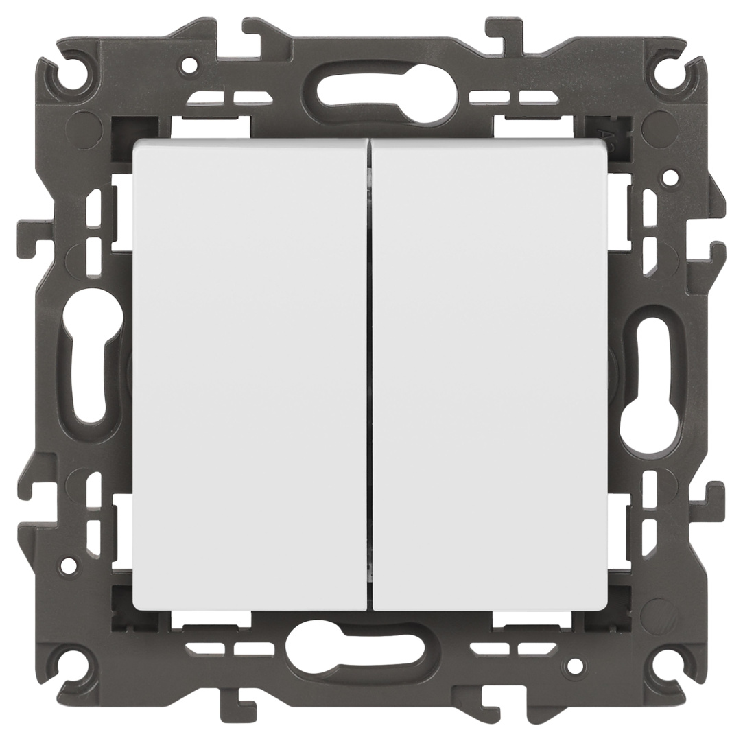 Переключатель перекрёстный/промежуточный двойной серии Эра Elegance скрытой установки цвет белый матовый 14-1112-01М. Характеристики 10А 250В. Винтовой зажим. Рамки приобретаются отдельно.