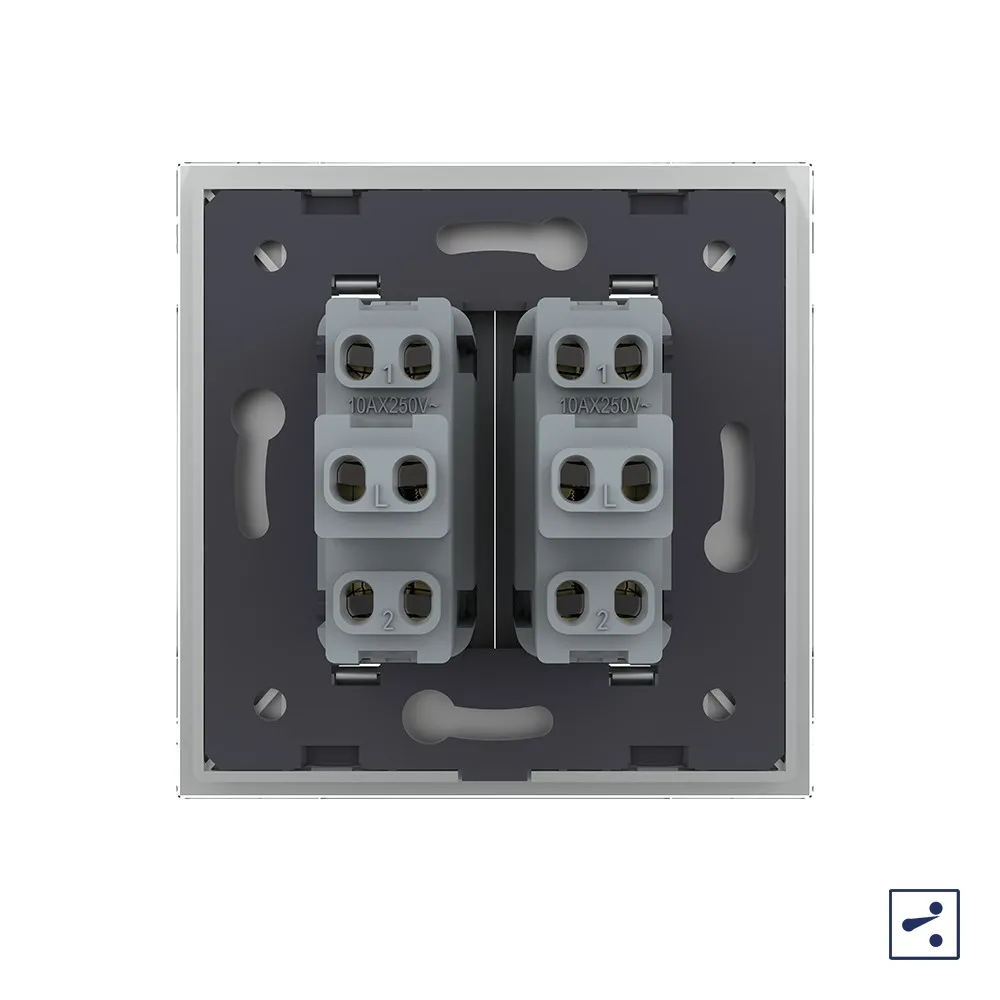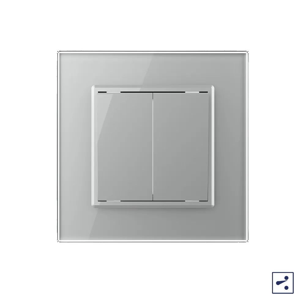 Двухклавишный проходной механический выключатель Livolo на 1 пост со стеклянной рамкой LIVOLO предназначен для управления двумя линиями нагрузки из двух мест. Для управления из трех мест необходим перекрестный выключатель. Перекрестный выклчючатель устанавливается между проходными, приобретается отдельно. Поддерживает управление лампами любого типа.