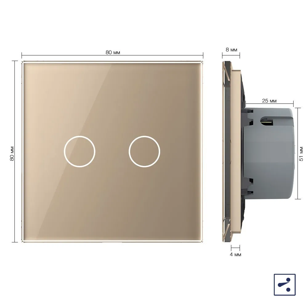 Двухклавишный проходной/перекрестный сенсорный выключатель Livolo, 1 пост, цвет шампань