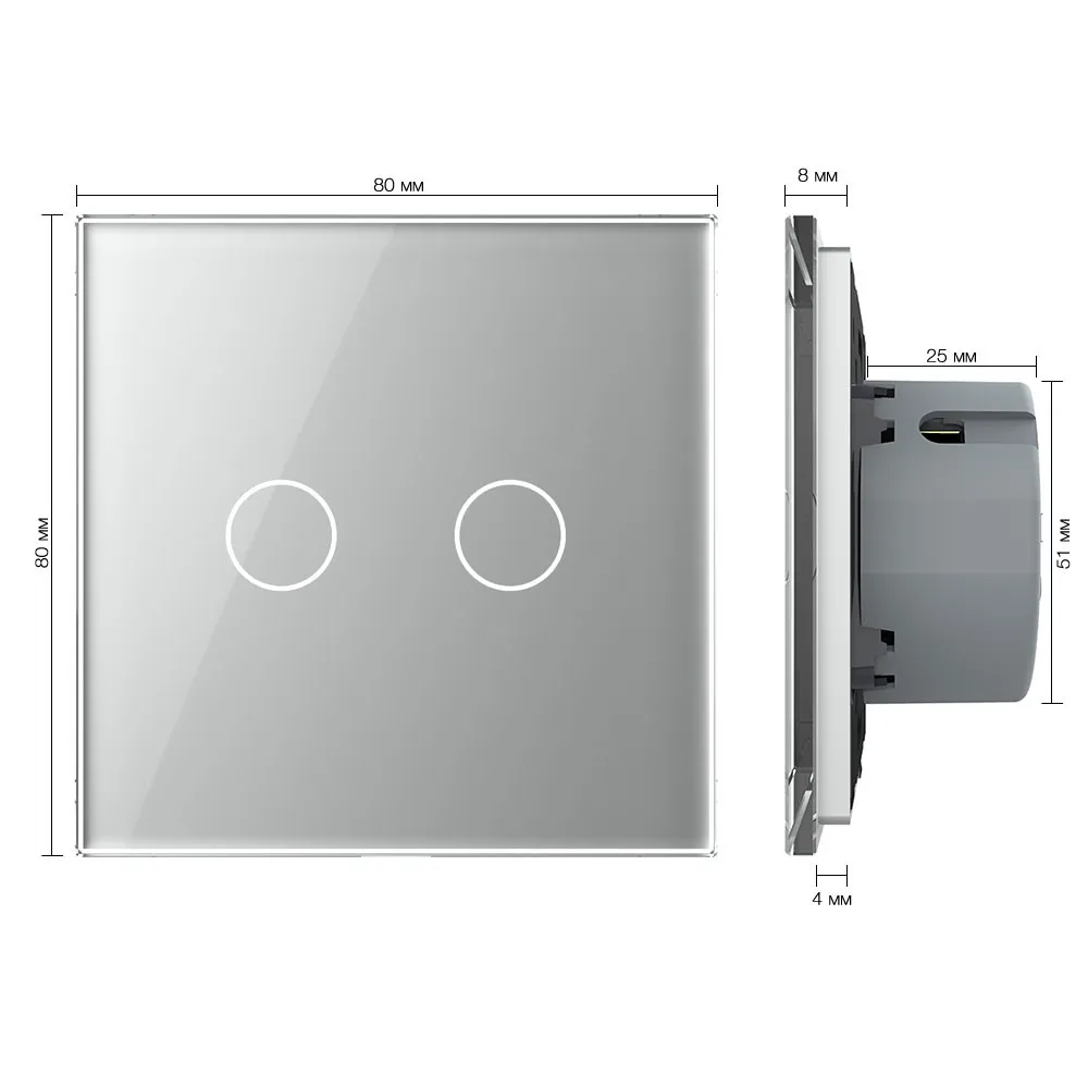 Двухклавишный сенсорный выключатель со стеклянной лицевой панелью LIVOLO предназначен для управления двумя линиями нагрузки. Поддерживает управление лампами любого типа.