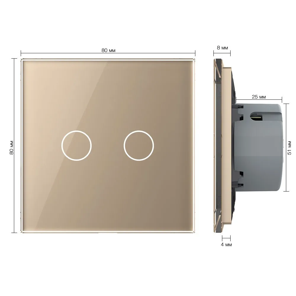 Двухклавишный сенсорный выключатель Livolo, 1 пост, цвет золотой