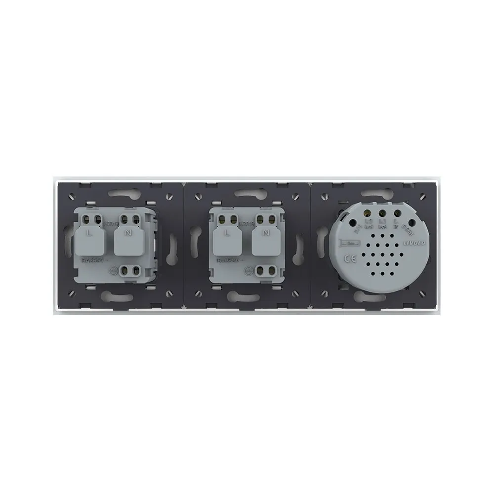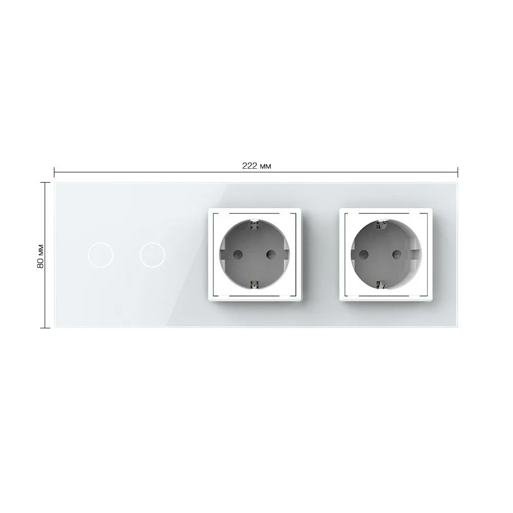 Двухклавишный сенсорный выключатель с двумя розетками Livolo на 3 поста со стеклянной комбинированной панелью LIVOLO предназначен для управления двумя линиями нагрузки. Поддерживает управление лампами любого типа. Используется для подключения к электрической сети переменного тока 110-250 В, 50-60 Гц различных приборов и агрегатов бытового и аналогичного назначения.