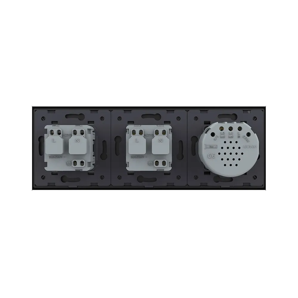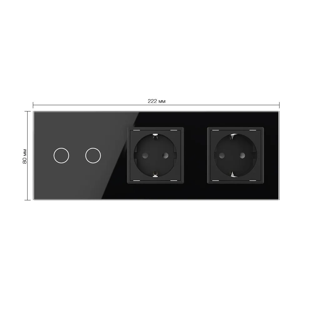 Двухклавишный сенсорный выключатель с двумя розетками Livolo, 3 поста, цвет черный