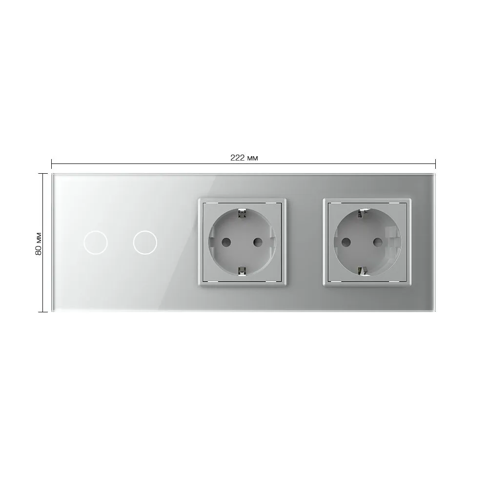 Двухклавишный сенсорный выключатель с двумя розетками Livolo, 3 поста, цвет серый