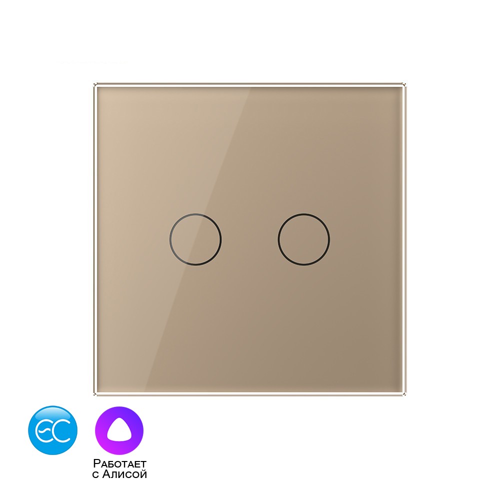 Двухклавишный умный сенсорный выключатель Livolo EC, 1 пост, цвет золотой