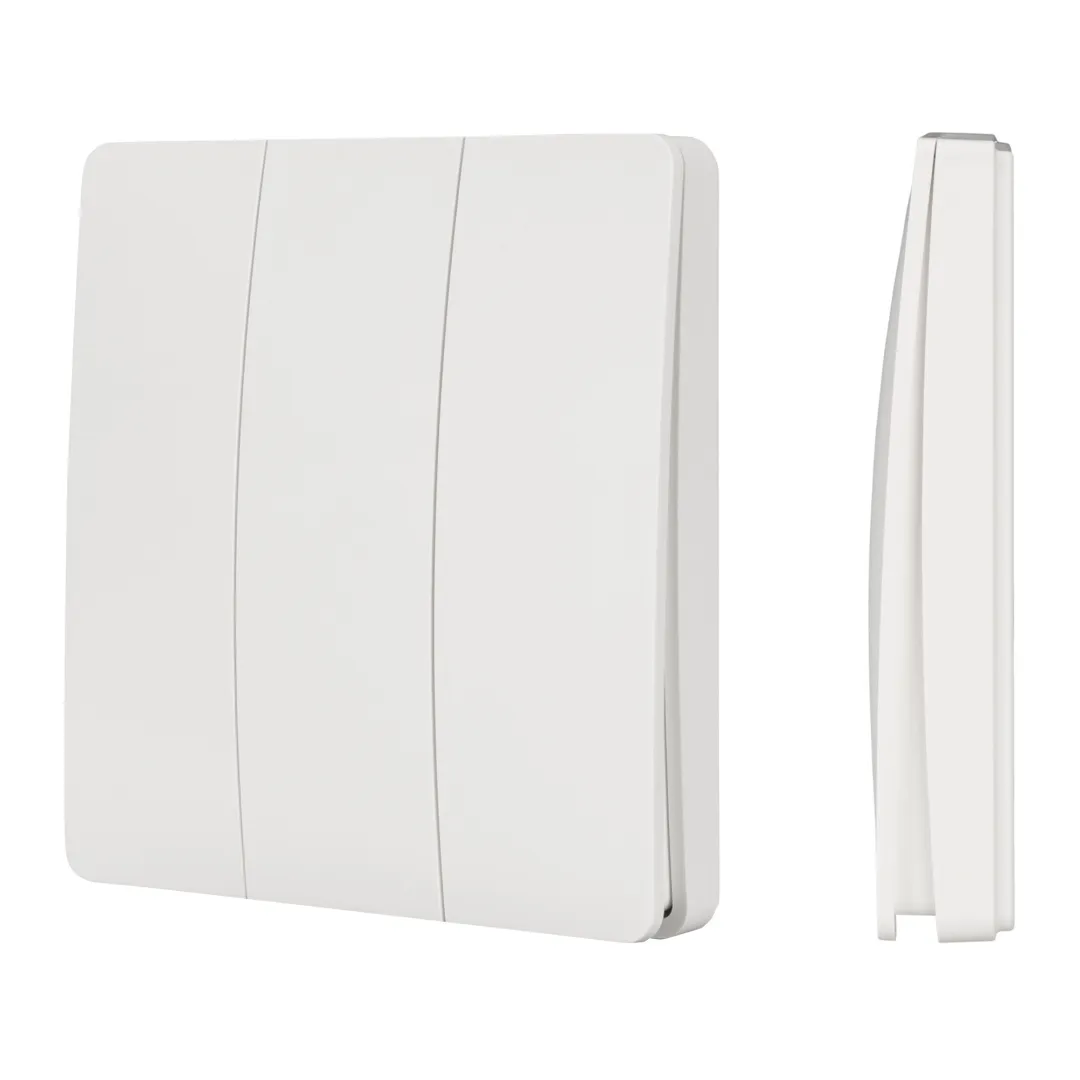 Накладная трехклавишная пластиковая панель серебристого цвета. Включение/выключение, диммирование двух групп света. Работает на частоте 433Мгц. Совместима с реле и диммерами серии TUYA-***-WF. Не требует питания, имеет встроенный кинетический источник питания. Защита IP67. Рабочая температура -20/+60 Дальность передачи в помещении / на улице - 30м/100м. Габариты панели 86x86x16.5 мм