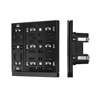 Механизм встраиваемой панели черного цвета с кнопочным управлением для систем KNX. 4 клавиши, светодиодная индикация. Наличие функции KNX Secure. Безрамочный корпус, материал корпуса - пластик , светодиодная индикация (настраиваемая RGB палитра индикации). Цвет корпуса - черный. Питание от шины KNX DC 21-30V. Габариты 86x86x33 мм.