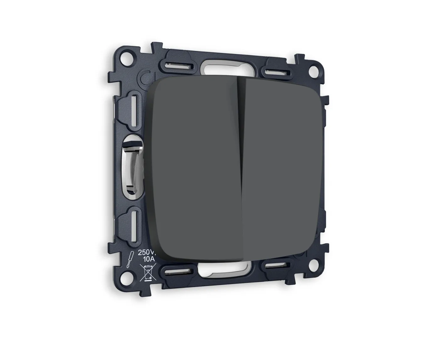 Комплект механизма 2-кл проходного выключателя OMEGA Графит мягкое касание QUANT (OP9030, VM120) MO903020
