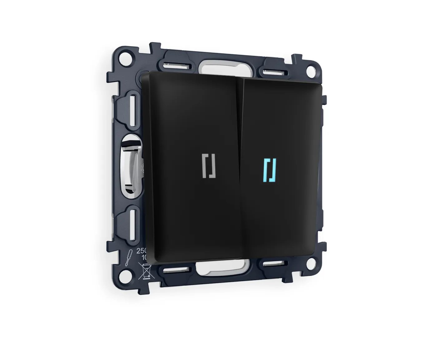 Комплект механизма 2-кл проходного выключателя с подсветкой 10000K ALFA Черный матовый QUANT (AP8040, VM120, G29B) MA804040