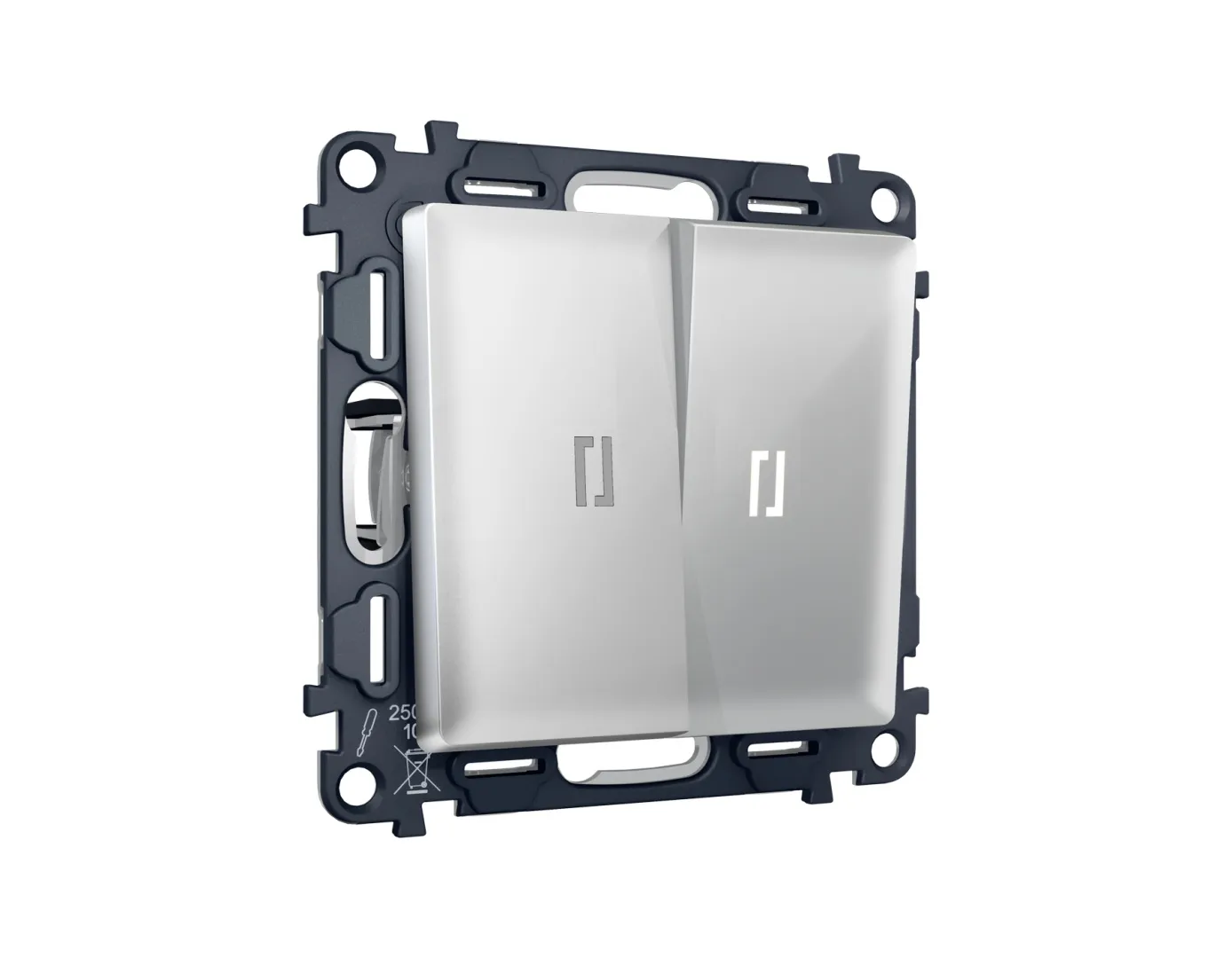 Комплект механизма 2-кл проходного выключателя с подсветкой 5600K ALFA Серебро глянец QUANT (AP4040, VM120, G25W) MA404035