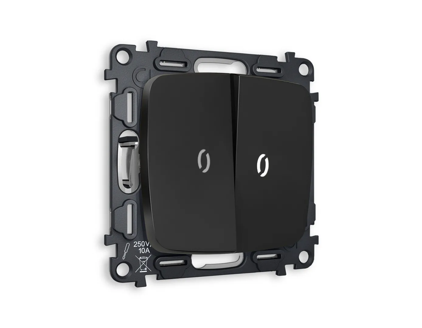 MO904060 Комплект механизма 2-кл выключателя с самовозвратом с подсветкой 10000K OMEGA Графит Мягкое касание QUANT (OP9040, VM129, G17B)