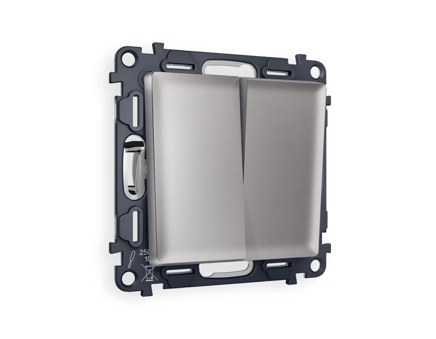 Комплект механизма 2-кл выключателя ALFA Сталь матовый QUANT (AP5030, VM115) MA503010
