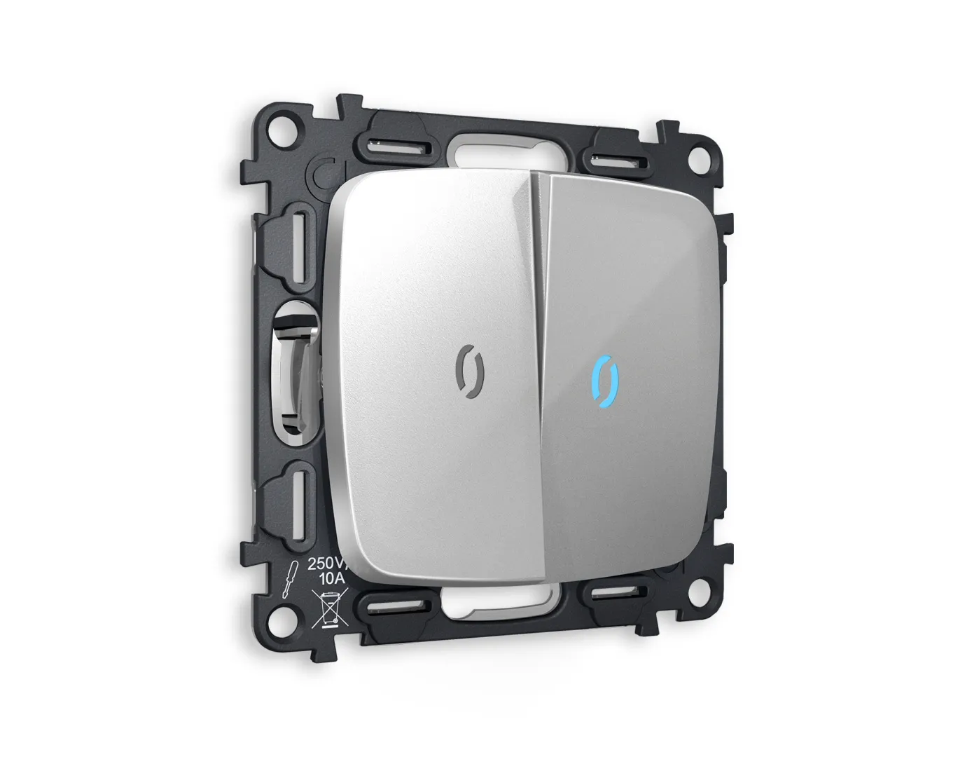 Комплект механизма 2-кл выключателя с подсветкой 10000K OMEGA Серебро глянец QUANT (OP4040, VM115, G17B) MO404020