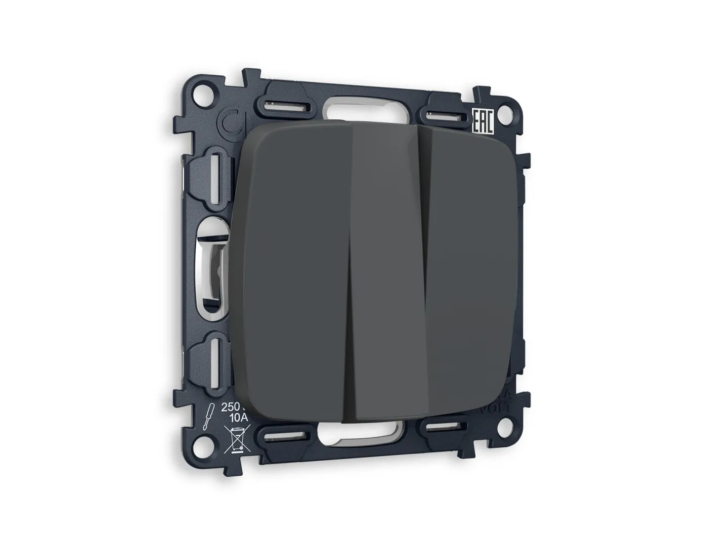 MO904060 Комплект механизма 2-кл выключателя с самовозвратом с подсветкой 10000K OMEGA Графит Мягкое касание QUANT (OP9040, VM129, G17B)