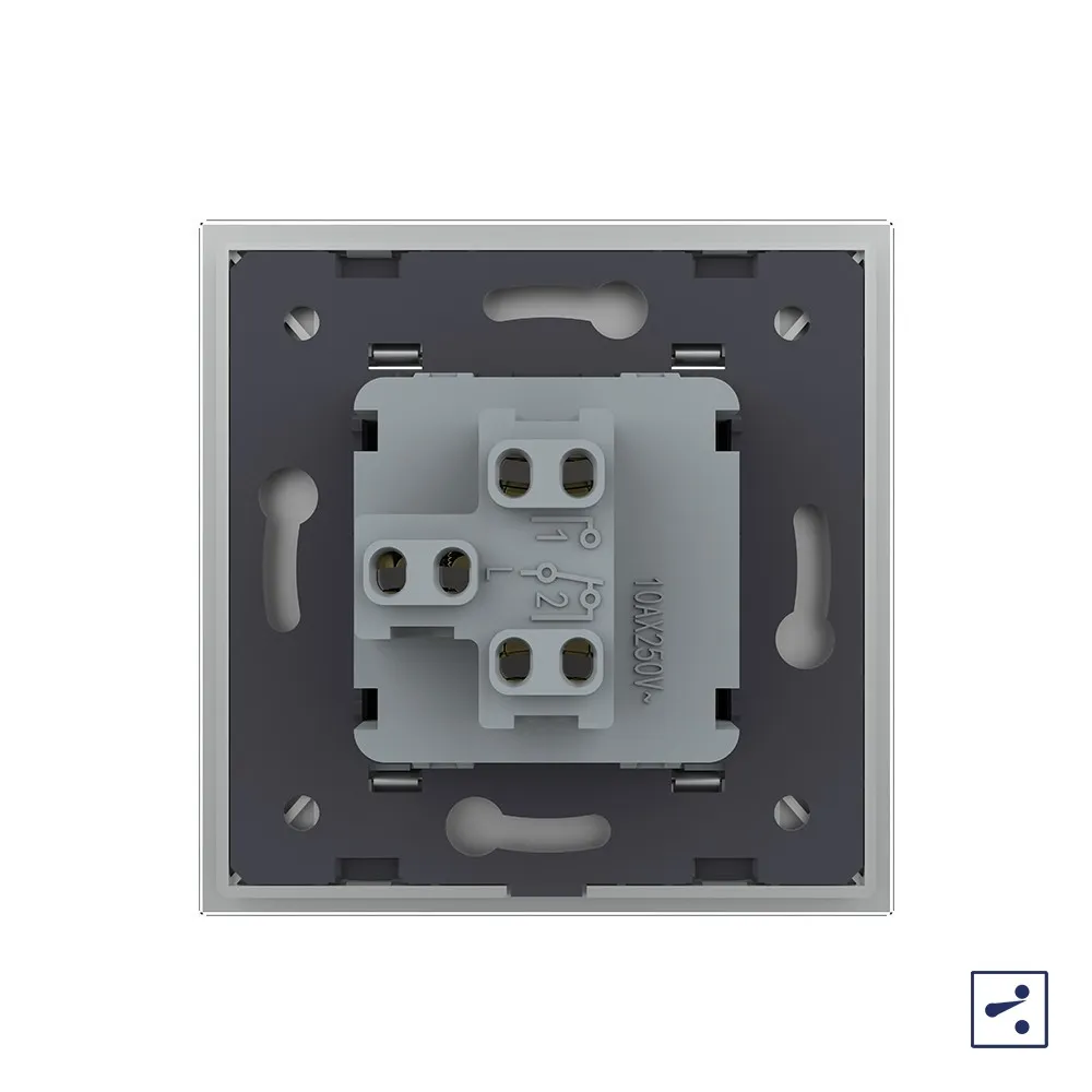 Одноклавишный проходной механический выключатель Livolo на 1 пост со стеклянной рамкой LIVOLO предназначен для управления одной линией нагрузки из двух мест. Для управления из трех мест необходим перекрестный выключатель. Перекрестный выклчючатель устанавливается между проходными, приобретается отдельно. Поддерживает управление лампами любого типа.