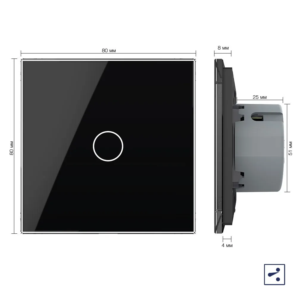 Устанавливается в круглый подрозетник в комплекте со стеклянной лицевой панелью (в комплекте).