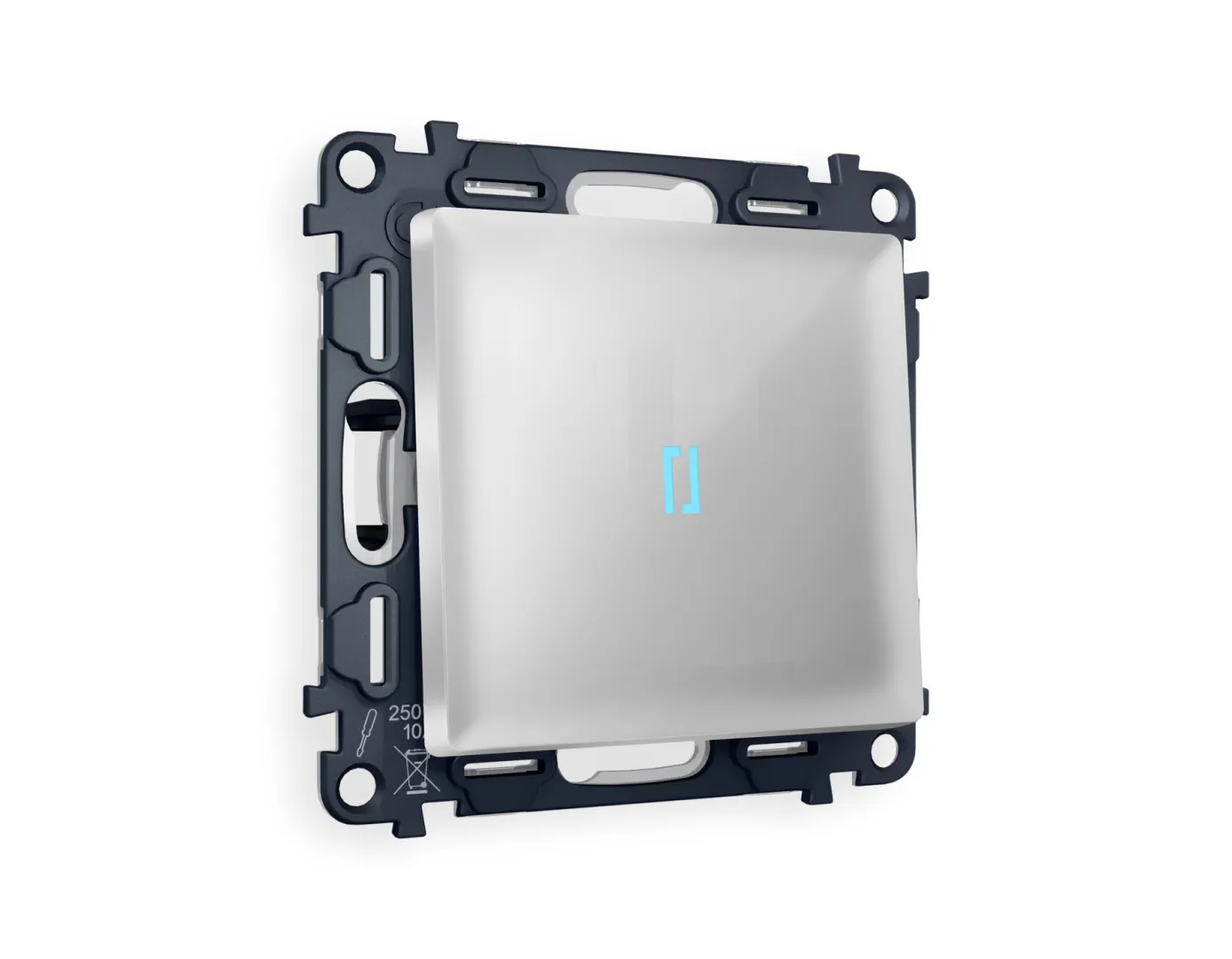 Одноклавишный выключатель с подсветкой 10000K ALFA Серебро глянец QUANT (AP4020, VM101, G17B) MA402020