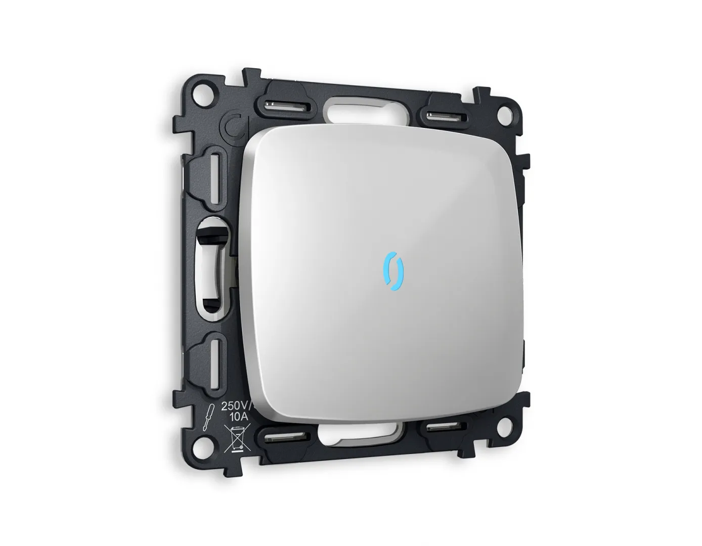 Одноклавишный выключатель с подсветкой 10000K OMEGA Серебро глянец QUANT (OP4020, VM101, G17B) MO402020