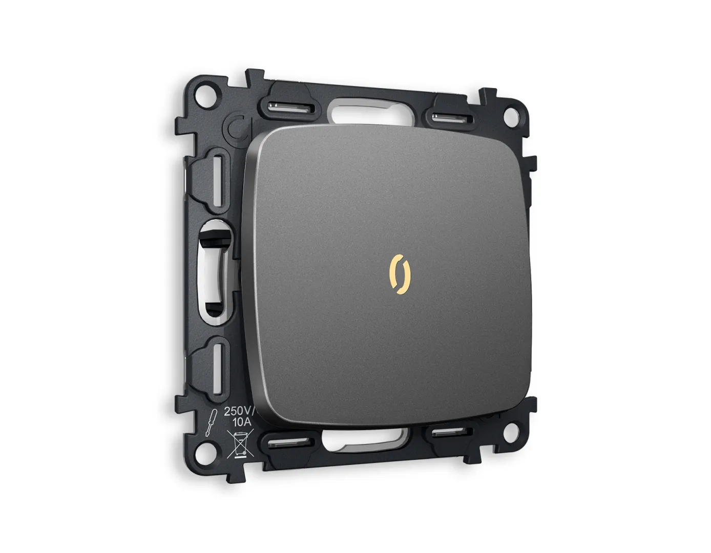 MO904060 Комплект механизма 2-кл выключателя с самовозвратом с подсветкой 10000K OMEGA Графит Мягкое касание QUANT (OP9040, VM129, G17B)