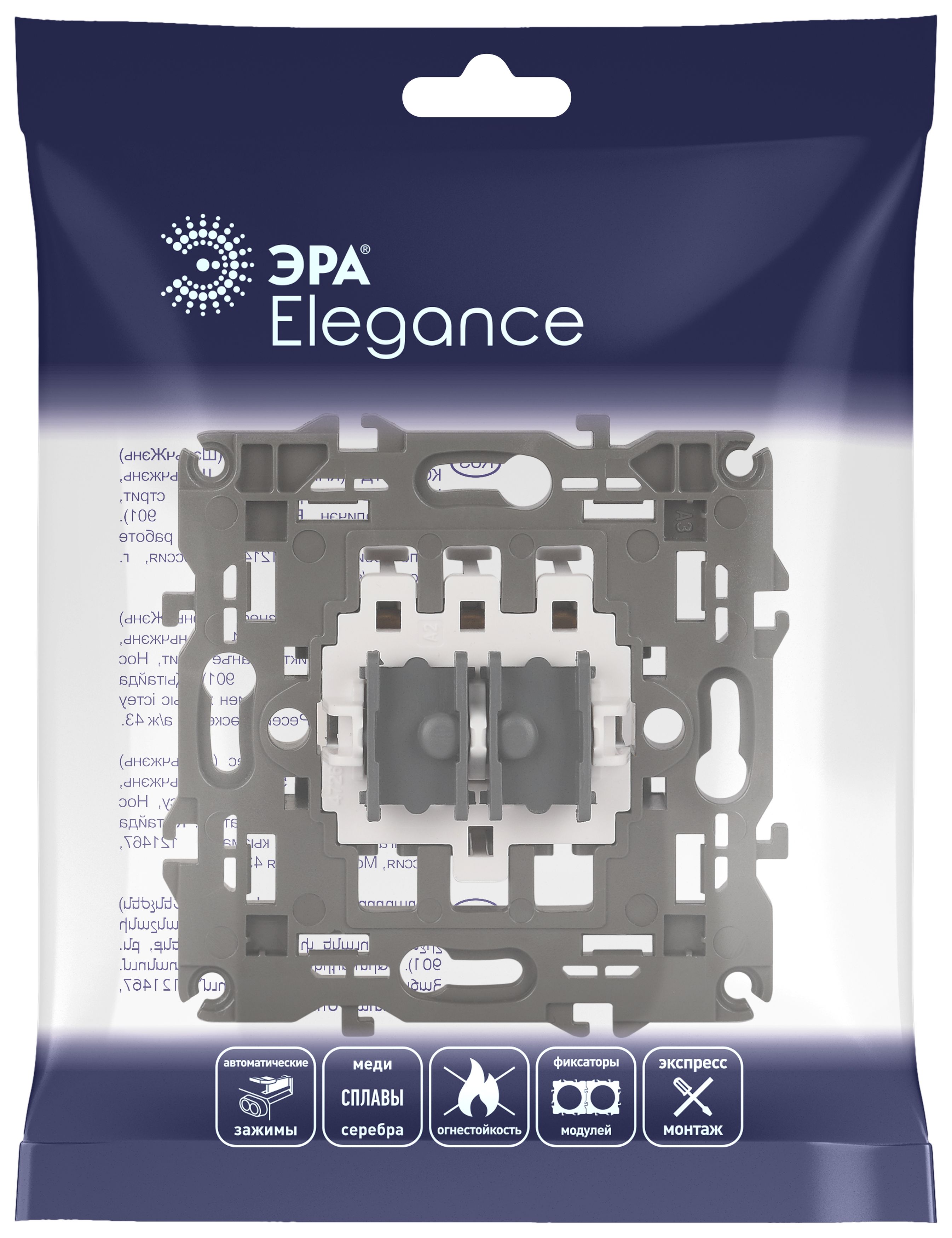 Переключатель для жалюзи типа "Выключатель" серии Эра Elegance скрытой установки механизм 14-1109-99. Номинальные характеристики 10А 250В . Сделан из поликарбоната, оснащён автоматическими клеммами для быстрой и надёжной фиксации жил кабеля в механиpме. Монтаж в подрозетник производится и на лапки, и на винты. Рамки приобретаются отдельно. Клавиши приобретаются отдельно: 12-6203-хх (хх - код цвета: 01-белый, 02-слоновая кость, 03-алюминий, 04-шампань, 05-антрацит)