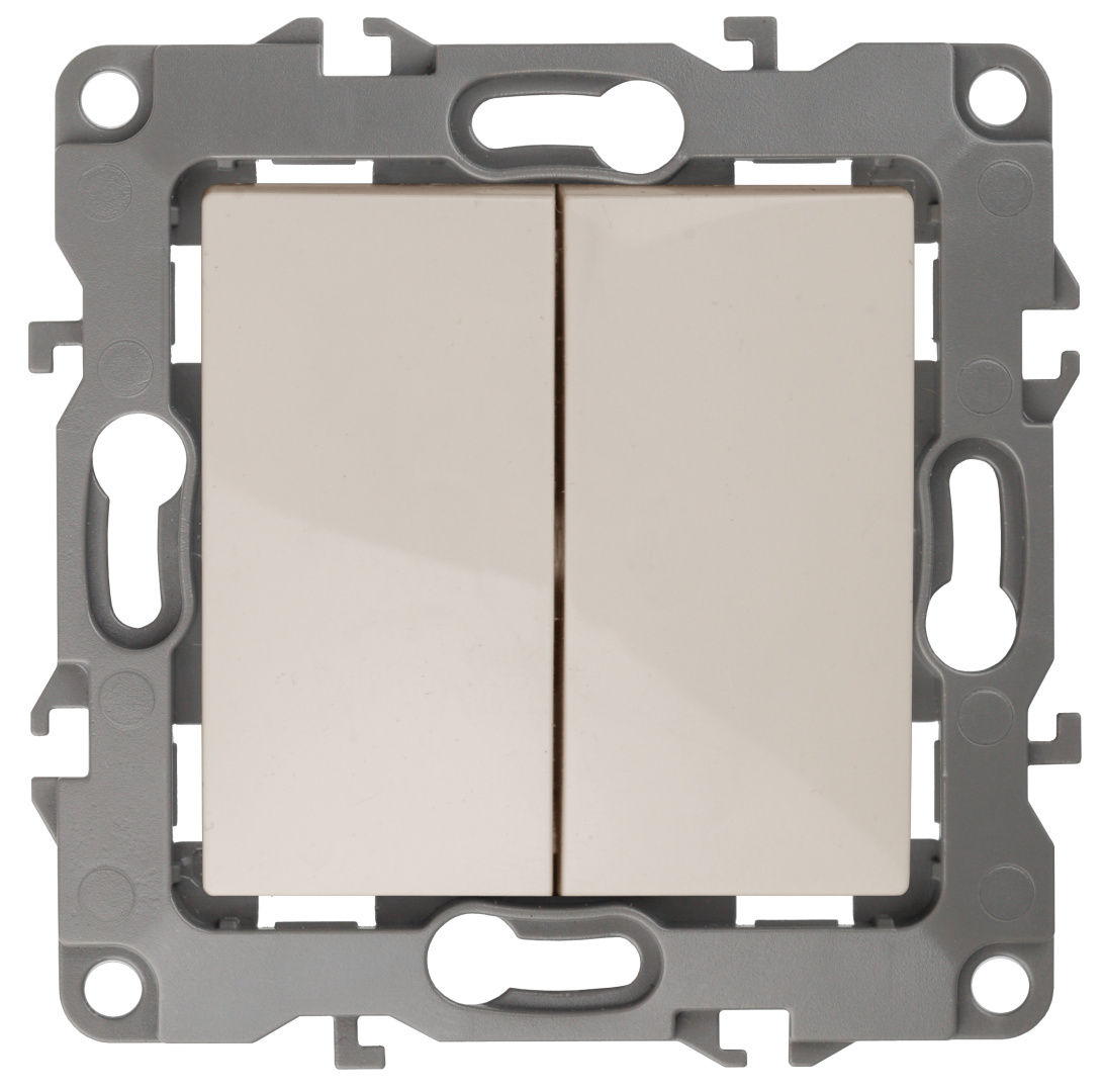 Выключатель 2-клавишный проходной серии Эра 12 скрытой установки механизм цвет слоновая кость 12-1106-02. Номинальные характеристики 10А 250В . Сделан из поликарбоната, оснащёно автоматическими клеммами для быстрй и надёжной фиксации жил кабеля в механиме. Парные клеммы обеспечивают соединение шлейфом. Монтаж в подрозетник производится и на лапки, и на винты. Рамки приобретаются отдельно. Рамки Эра 12: 1 пост 12-5001-хх, 2 поста 12-5002-хх, 3 поста 12-5003-хх, 4 поста 12-5004-хх, 5 постов 12-5005-хх. Рамки Эра 12 Сатин: 1 пост 12-5101-хх, 2 поста 12-5102-хх, 3 поста 12-5103-хх, 4 поста 12-5104-хх, 5 постов - 12-5105-хх (хх - код цвета: 01-белый, 02-слоновая кость, 03-алюминий, 04-шампань, 05-антрацит, 06-чёрный, 07-ольха(белёный дуб-сатин), 08-вишня, 09-дуб, 10-венге, 11-сосна, 21-жёлтый, 22-оранжевый, 23-красный, 24-охра, 25-бордо, 26-лайм, 27-зелёный, 28-голубой, 29-синий).