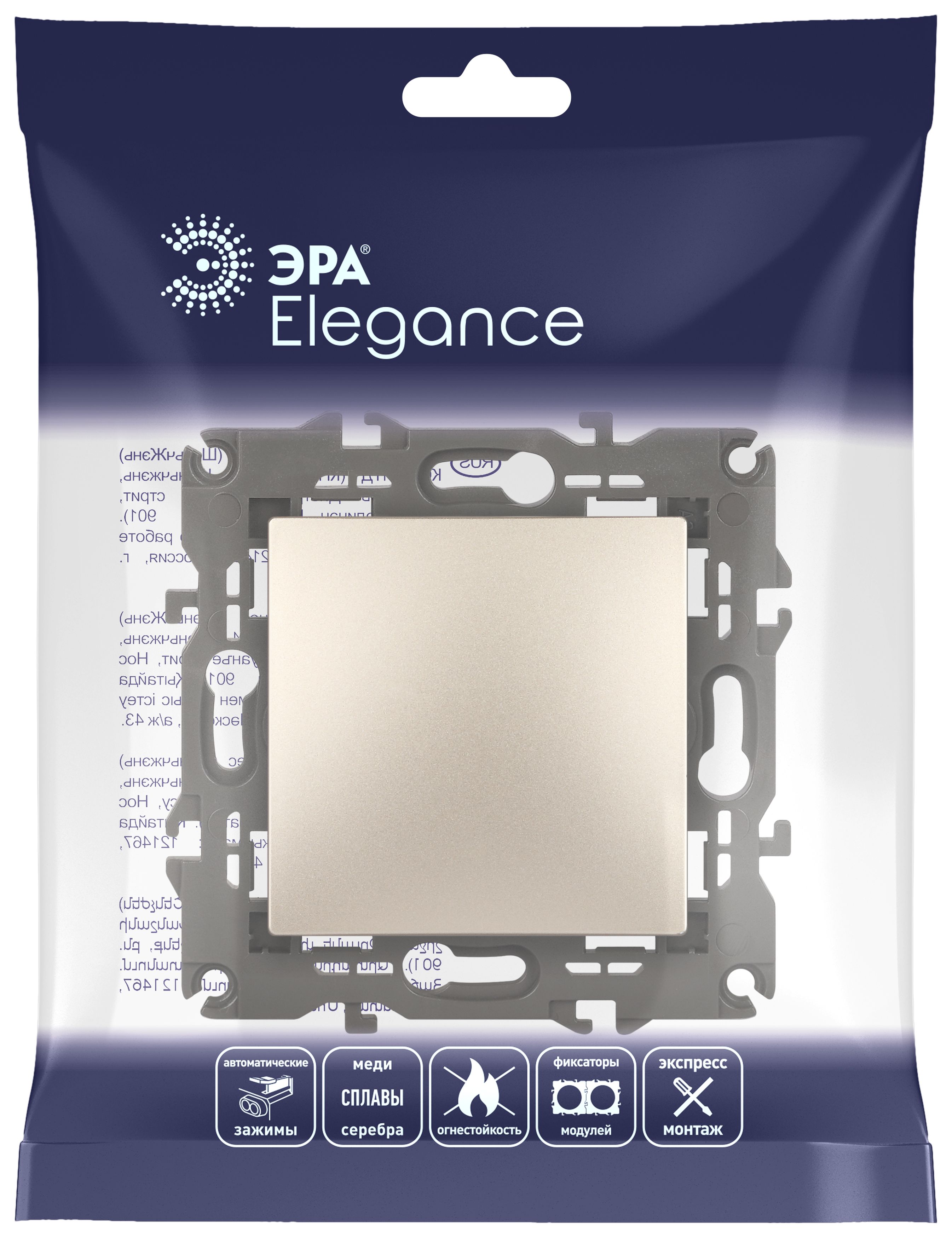 Выключатель 1-клавишный перекрёстный Эра Elegance шампань 14-1108-04. Оснащён автоматическими клеммами для надёжной фиксации жил кабеля в механизме. Рамки приобретаются отдельно.