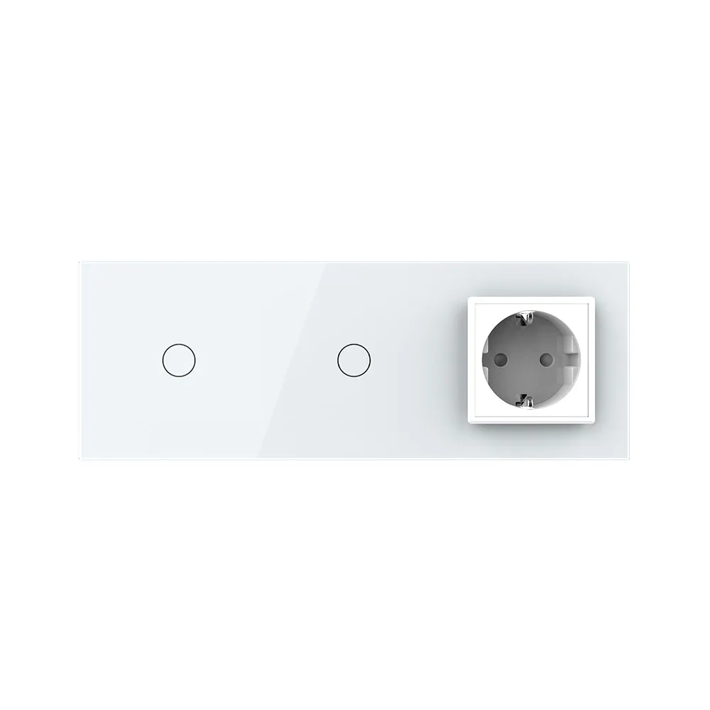 Сенсорный выключатель Livolo 2 клавиши (1-1) с розеткой Livolo на 3 поста со стеклянной комбинированной панелью LIVOLO предназначен для управления двумя линиями нагрузки. Поддерживает управление лампами любого типа. Используется для подключения к электрической сети переменного тока 110-250 В, 50-60 Гц различных приборов и агрегатов бытового и аналогичного назначения.