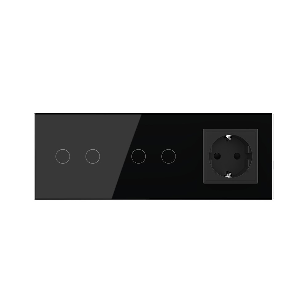 Сенсорный выключатель Livolo 4 клавиши (2-2) с розеткой Livolo, 3 поста, цвет черный