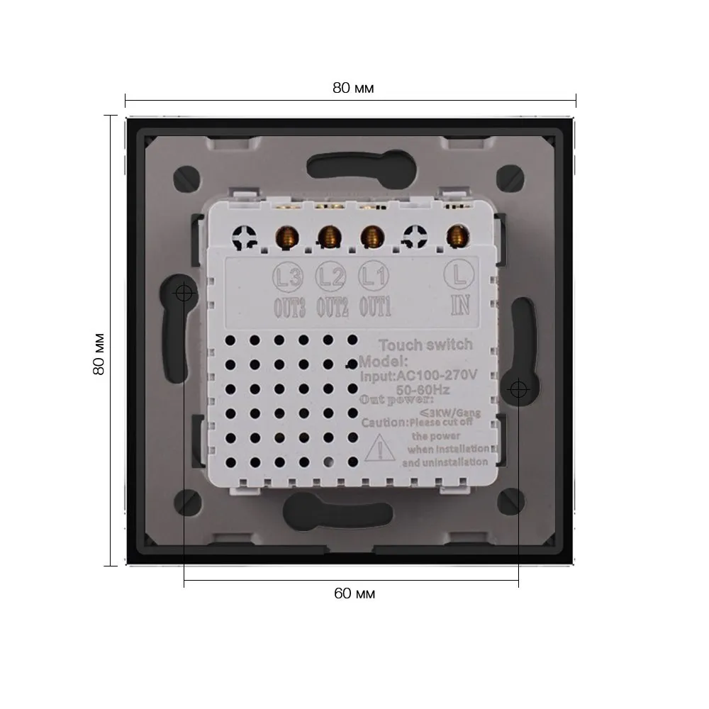Трехклавишный сенсорный выключатель со стеклянной лицевой панелью LIVOLO предназначен для управления тремя линиями нагрузки. Поддерживает управление лампами любого типа.