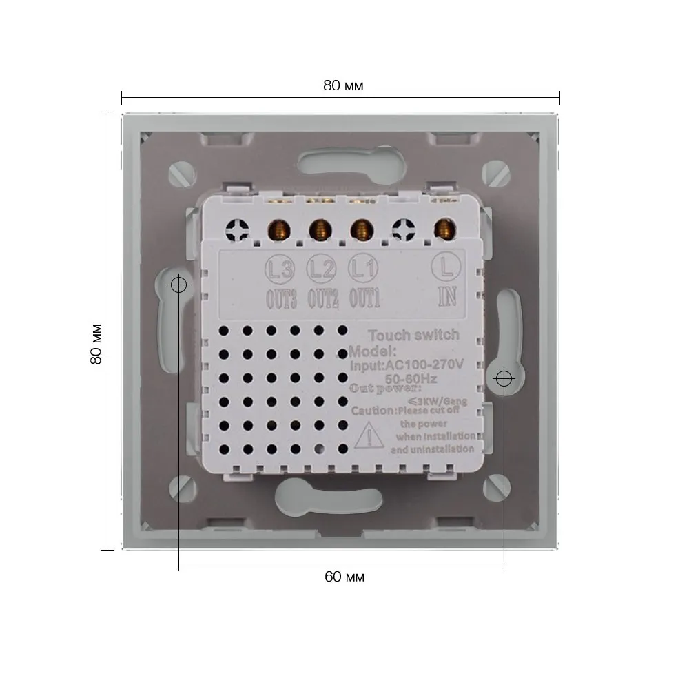 Трехклавишный сенсорный выключатель Livolotouch EU стандарт, 1 пост, цвет серый