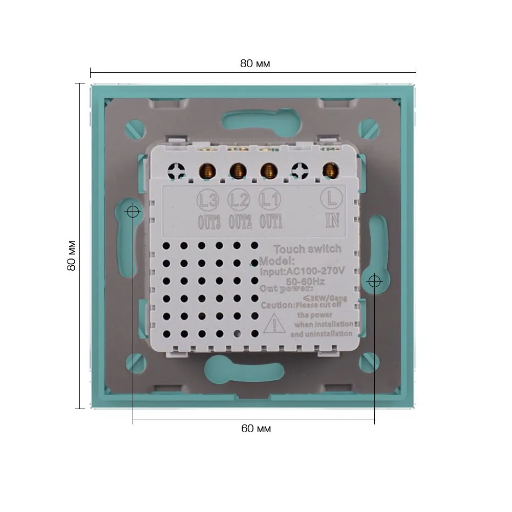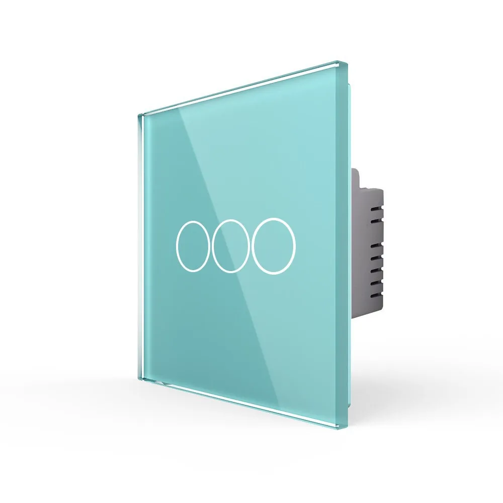Трехклавишный сенсорный выключатель со стеклянной лицевой панелью LIVOLO LT-C703-18 зеленого цвета предназначен для управления тремя линиями нагрузки. Поддерживает управление лампами любого типа. Включение/выключение освещения осуществляется одним легким прикосновением. Мягкая светодиодная подсветка позволит с легкостью найти выключатель в темном помещении. Для установки выключателя не требуется переделывать проводку. Просто замените старый выключатель на сенсорный. Устанавливается в круглый подрозетник в комплекте со стеклянной лицевой панелью (в комплекте). Эксплуатация Коснитесь сенсора для вкл/выкл света. Выключатель имеет двухцветную светодиодную подсветку клавиши. Красный цвет - выключатель включен, синий цвет - выключен. Рабочее напряжение: 110-240 В, 50-60 Гц. Мощность нагрузки: 5 Вт/Клавиша - 1000 Вт/Клавиша. Выключатель может немного нагреваться, когда включен. Избегайте использования нагрузок, превышающих номинальный выходной ток 5 А/Клавиша. Подходит для эксплуатации с любыми типами ламп. Если выключатель не работает должным образом, отключите питание на 1 минуту, а затем снова включите. Срок службы: 30 000 переключений. Гарантия 24 мес. Комплектация Механизм выключателя. Металлический суппорт для крепления. Стеклянная панель. Меры предосторожности Чтобы не получить травму и не повредить выключатель, внимательно прочтите все инструкции. Не устанавливайте изделие в местах с высокой температурой, сильным светом и сильными магнитными полями, а также в других суровых условиях, например, вблизи источников огня. Неправильное использование изделия может легко привести к его повреждению или поставить под угрозу личную безопасность и безопасность имущества. Потребитель несет ответственность за любой личный и имущественный ущерб, возникший в результате неправильного использования продукта в соответствии с руководством пользователя. Категорически запрещается разбирать выключатель. Избегайте использования нагрузок, превышающих номинальный выходной ток выключателя. Следует избегать интенсивных физических действий, включая стуки, бросания, топтание, сдавливание и т. д.