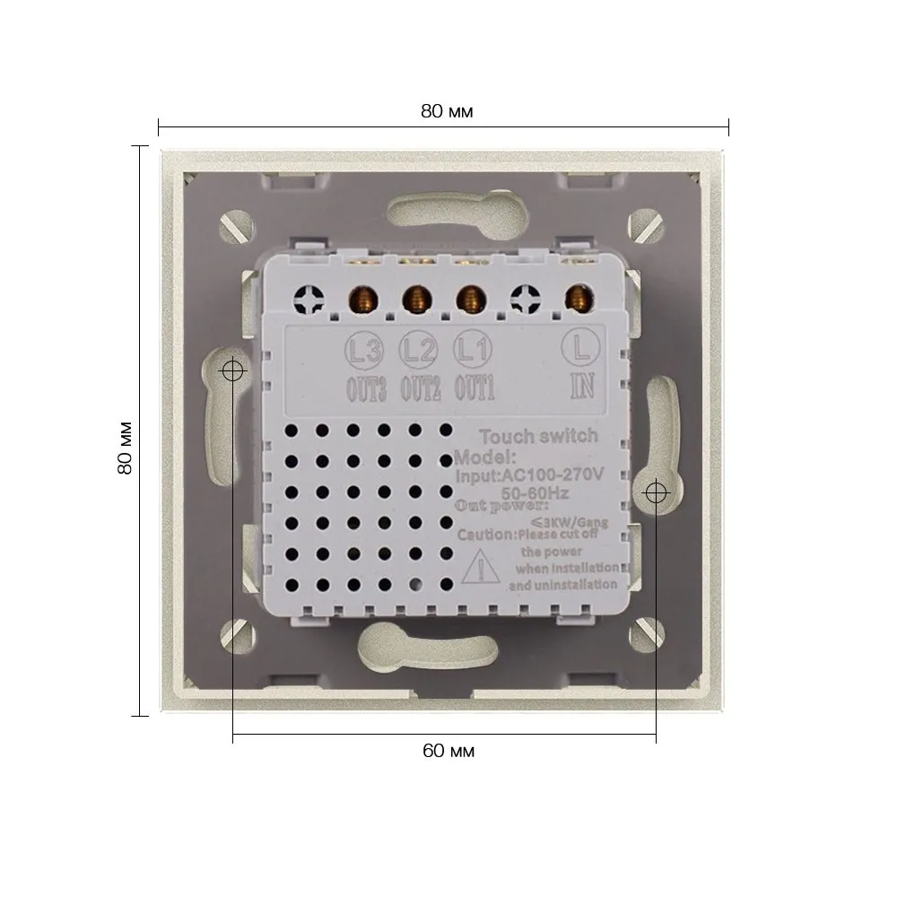 Трехклавишный сенсорный выключатель со стеклянной лицевой панелью LIVOLO предназначен для управления тремя линиями нагрузки. Поддерживает управление лампами любого типа.