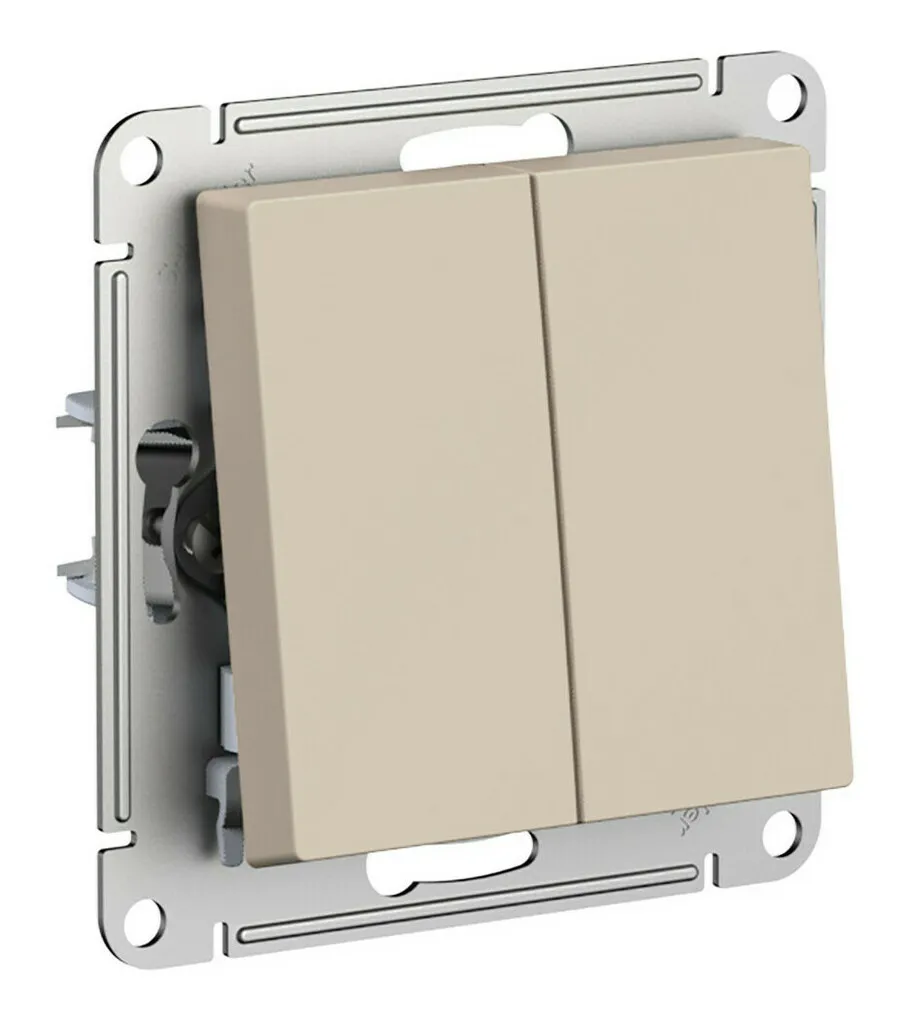 Выключатель 2-клавишный Systeme Electric ATLASDESIGN, скрытый монтаж, песочный, ATN001251
