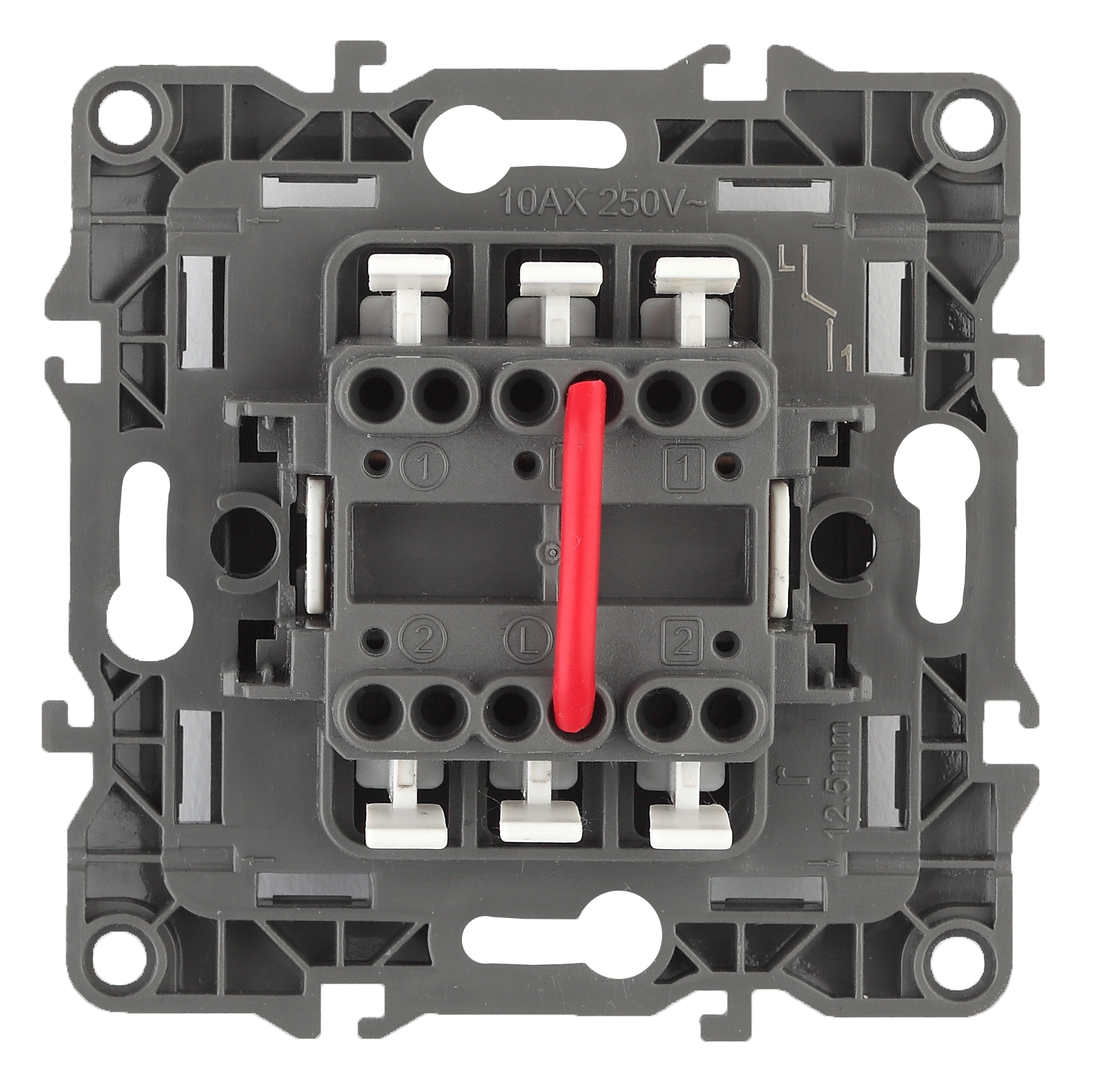 Двойной выключатель "ЭРА" выполнен из прочного пластика, контакты бронзовые. Изделие просто в установке, надежно в эксплуатации. Выключатель имеет специальные фиксаторы, которые не дают ему смещаться как при монтаже, так и в процессе эксплуатации. Автоматические зажимы кабеля обеспечивают быстрый и надежный монтаж изделия к электросети без отвертки и не требуют обслуживания в отличие от винтовых зажимов.