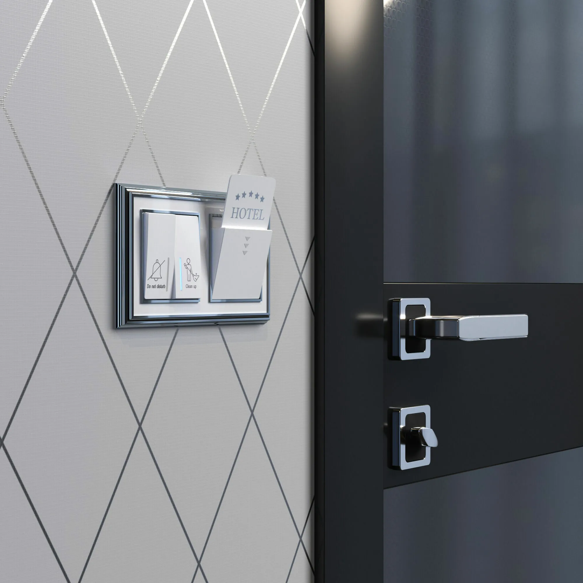 Кнопка вызова горничной передаёт сигнал персоналу на дверной звонок с индикатором, находящийся снаружи номера. Включение гостем режима «не беспокоить» также отображается на индикаторе — и отключает дверной звонок. Кроме того, механизм может использоваться в офисах и медицинских учреждениях.