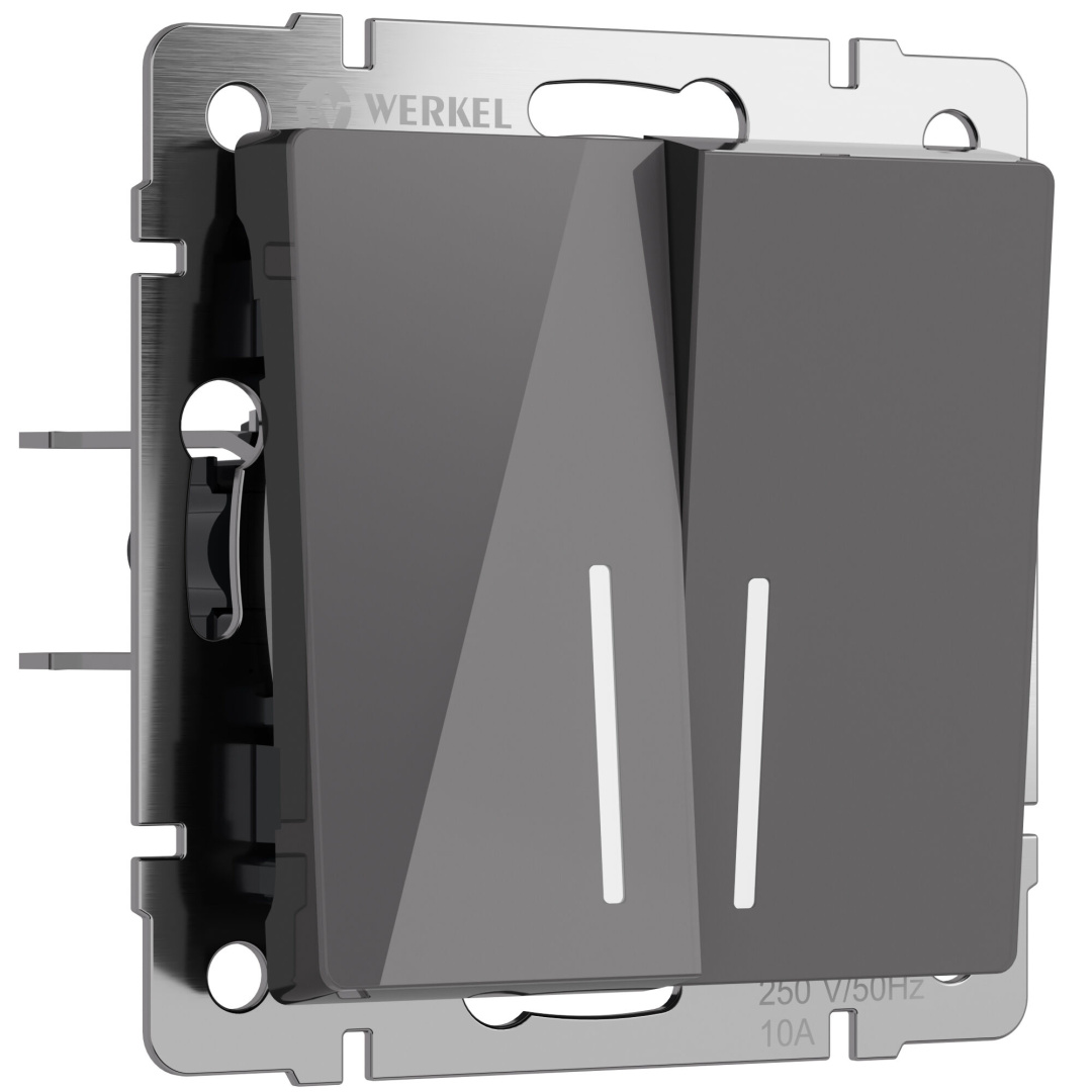 Встраиваемый двухклавишный проходной выключатель в цвете графит акрил с LED подсветкой 10 А 250 В, 50 Гц W1122144 является важнейшим элементом любой домашней электросети, служащим для управления света. Приглушенное свечение светодиодов позволяет легко найти выключатель в темное время суток и помогает ориентироваться в квартире, доме или помещении. Выключатель представляет собой механизм нажимного типа, имеющий металлический суппорт и декоративные накладки.