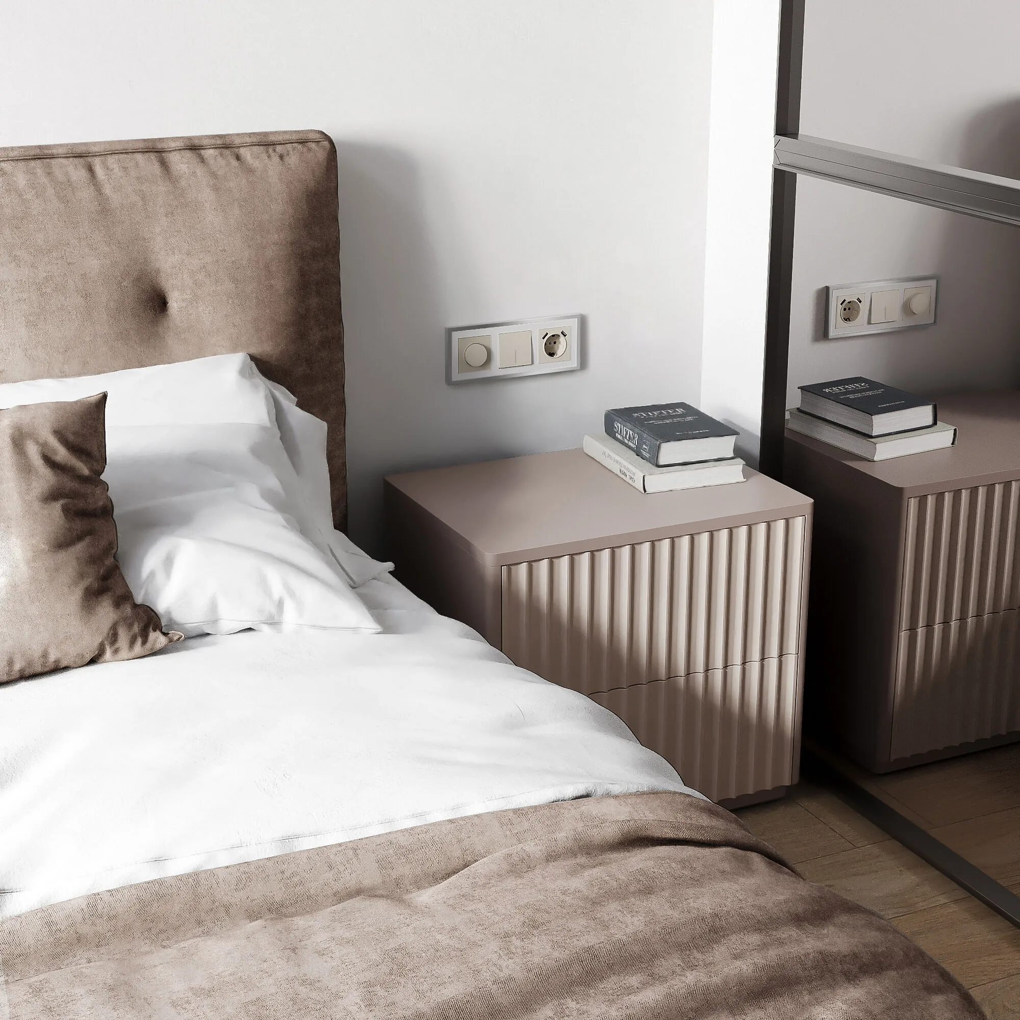 Выключатель представляет собой механизм нажимного типа, имеющий металлический суппорт и декоративные накладки. Электроустановочное изделие монтируется в установочную коробку, оставляя видимым только внешнюю лицевую панель и накладную рамку. Механизм для скрытой установки оснащен суппортом из нержавеющей стали, позволяющий крепко зафиксировать изделие в подрозетнике. Надежные контакты из фосфористой бронзы и серебра выдерживают большую нагрузку и обладают большим эксплуатационным ресурсом 40 000 циклов.
