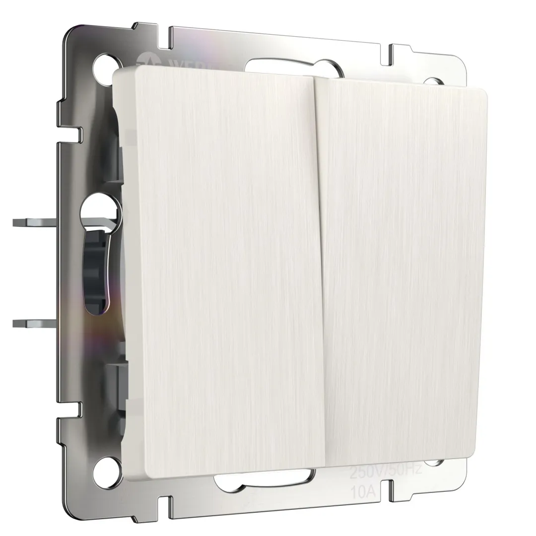 Эргономичный встраиваемый двухклавишный выключатель в цвете перламутровый рифленый 10 А 250 В, 50 Гц WL13-SW-2G-2W является важнейшим элементом любой домашней электросети, служащим для управления света. Выключатель представляет собой механизм нажимного типа, имеющий металлический суппорт и декоративные накладки.