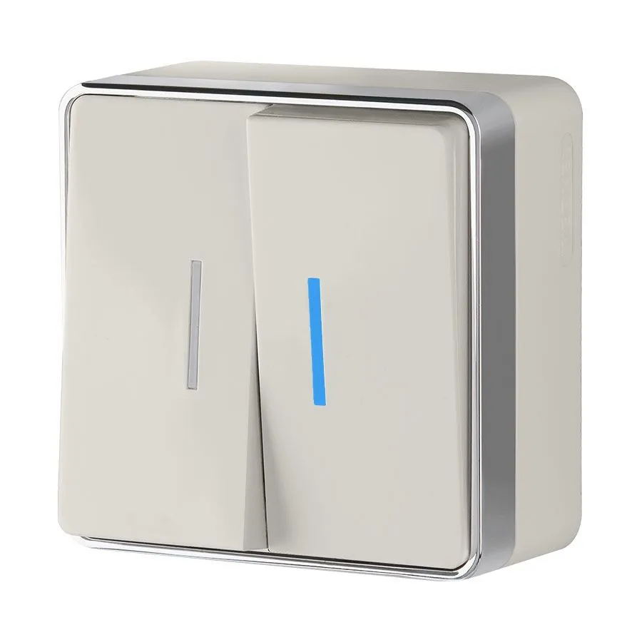 Минималистичный накладной двухклавишный выключатель с подсветкой цвета слоновая кость 10 А 250 В, 50 Гц W5020103 является ключевым элементом любой домашней электросети, служащим для управления света. Выключатель представляет собой механизм нажимного типа.