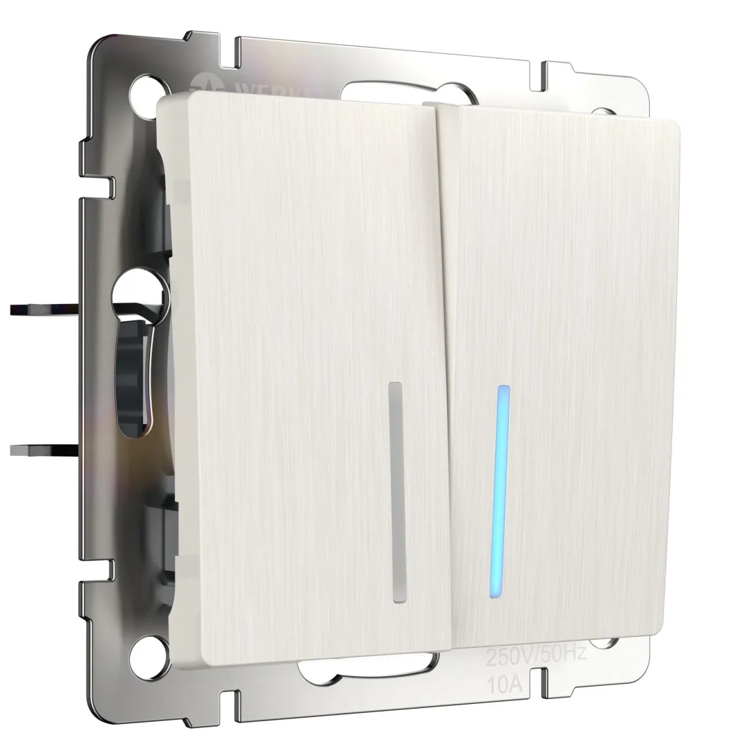 Эргономичный встраиваемый двухклавишный выключатель цвета перламутровый рифленый 10 А 250 В, 50 Гц WL13-SW-2G-LED является важнейшим элементом любой домашней электросети, служащим для управления света. Выключатель представляет собой механизм нажимного типа, имеющий металлический суппорт и декоративные накладки.