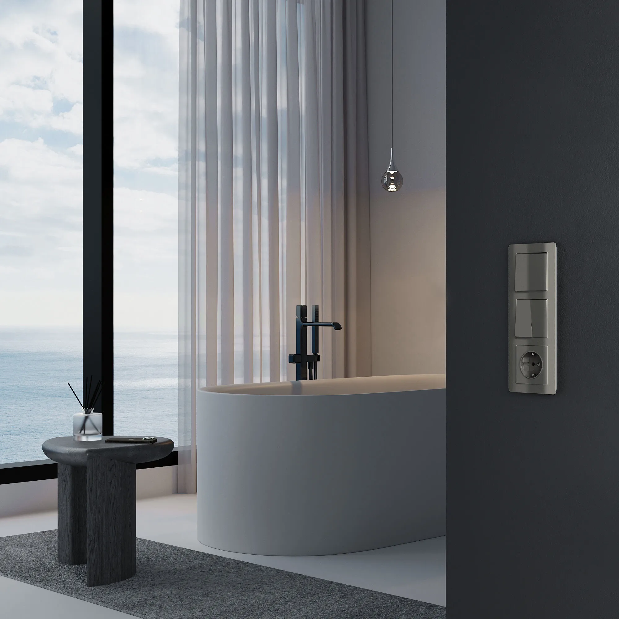 Электроустановочное изделие монтируется в установочную коробку, оставляя видимым только внешнюю лицевую панель и накладную рамку. Механизм для скрытой установки оснащен суппортом из нержавеющей стали, позволяющий крепко зафиксировать изделие в подрозетнике. Надежные контакты из фосфористой бронзы и серебра выдерживают большую нагрузку и обладают большим эксплуатационным ресурсом 40 000 циклов.